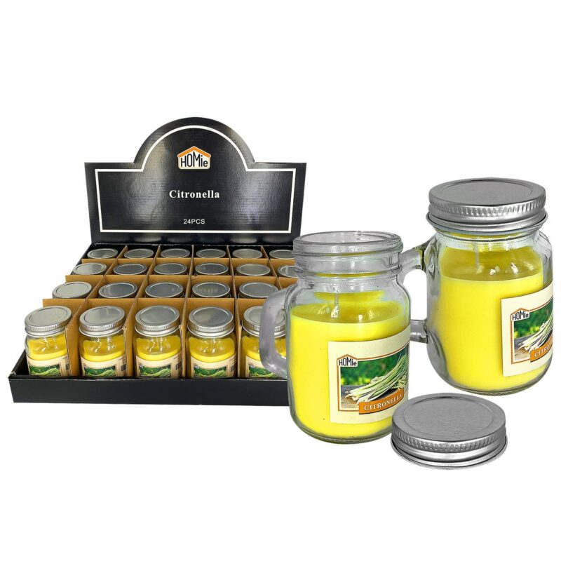 Κερί Σιτρονέλας σε Γυάλινο Ποτήρι με Καπάκι 8,5x6cm 210g Gross, 90g net Homie 57501 ποσότητα