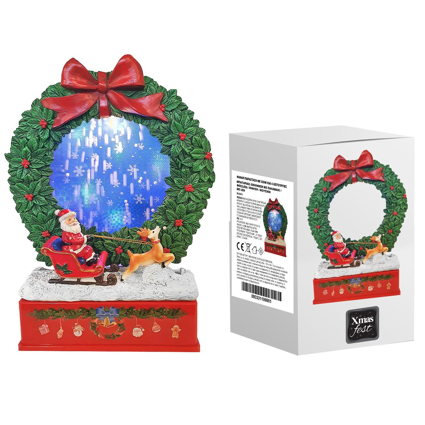 Φανάρι Παράσταση Στεφάνι με Χιόνι και 4 Λειτουργίες 27x ø21cm Xmasfest 1133331
