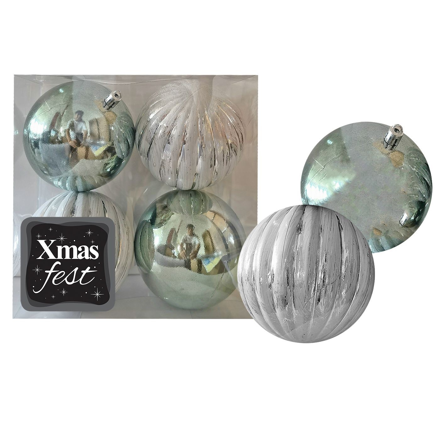 Μπάλες Ανάγλυφες Αντικέ μιξ με Γκριζοπράσινες πακ=4τεμ φ10 ø10cm Xmasfest 1133584