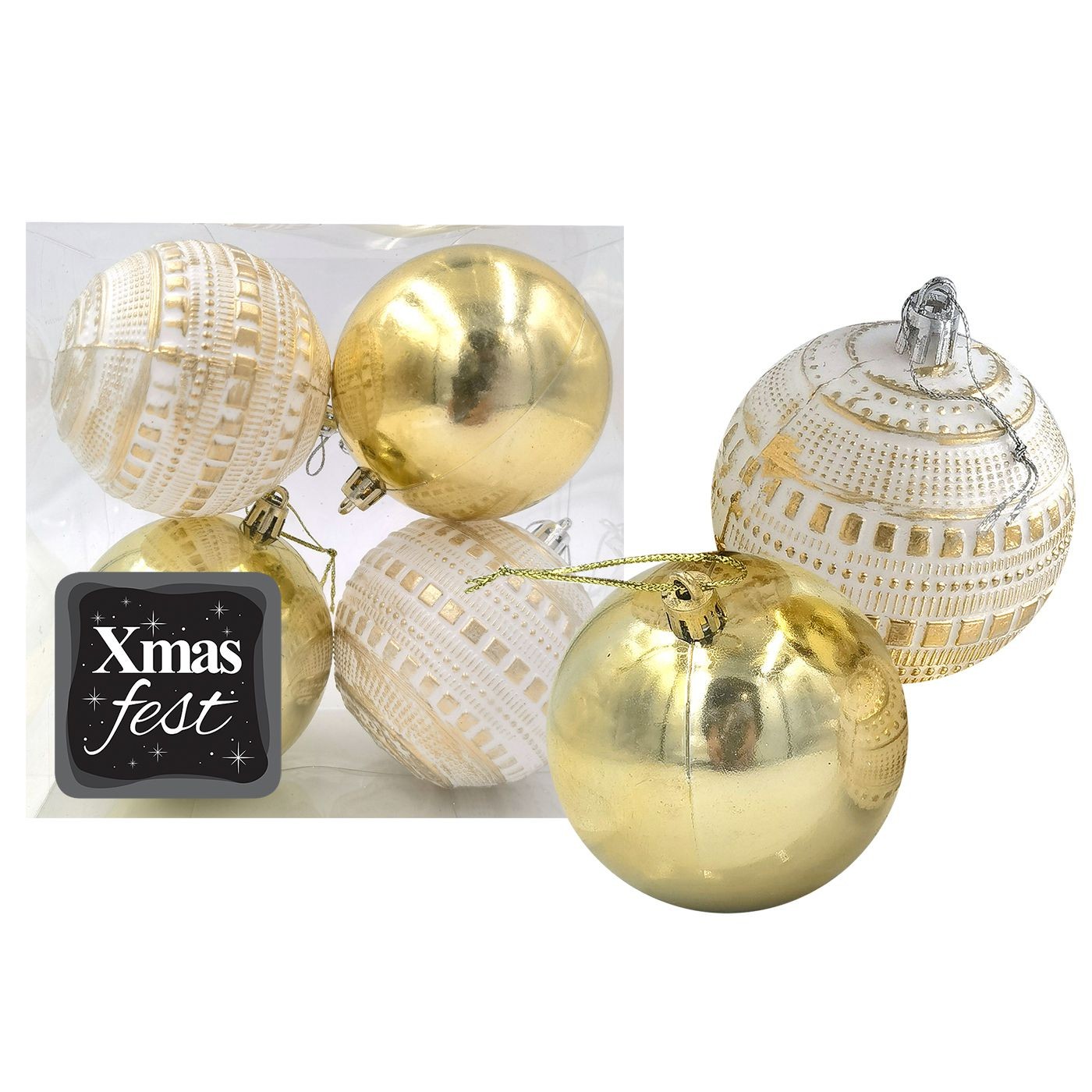 Μπάλες Ανάγλυφες Αντικέ μιξ με Λευκές πακ=4τεμ φ10 ø10cm Xmasfest 1133592