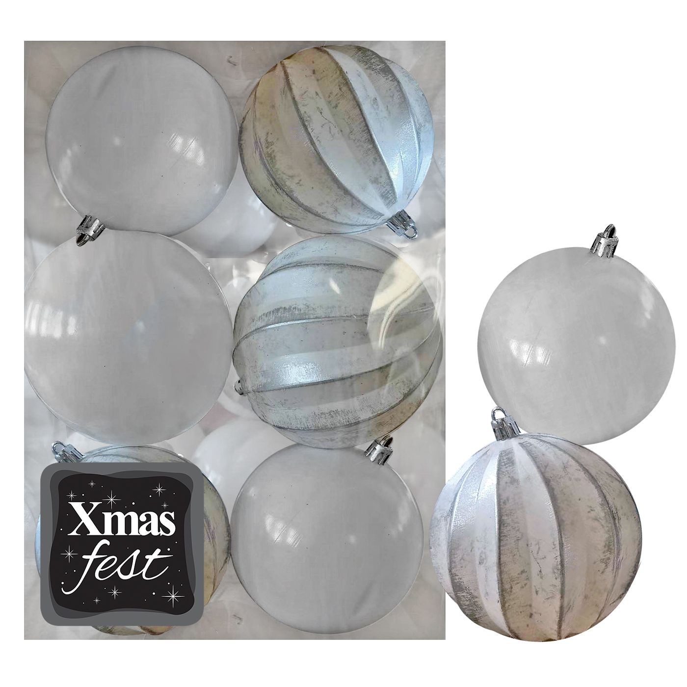 Μπάλες Ανάγλυφες Αντικέ μιξ με Λευκές πακ=6τεμ φ8 ø8cm Xmasfest 1133591