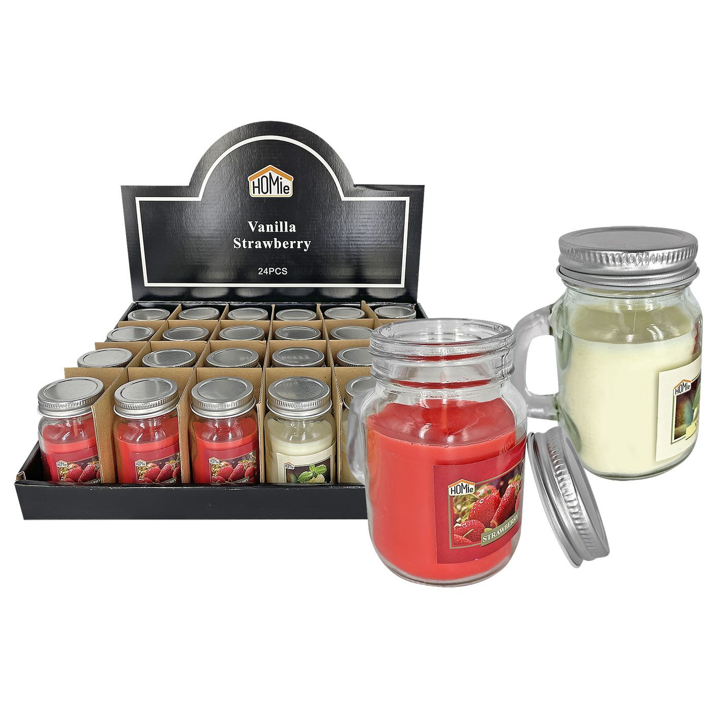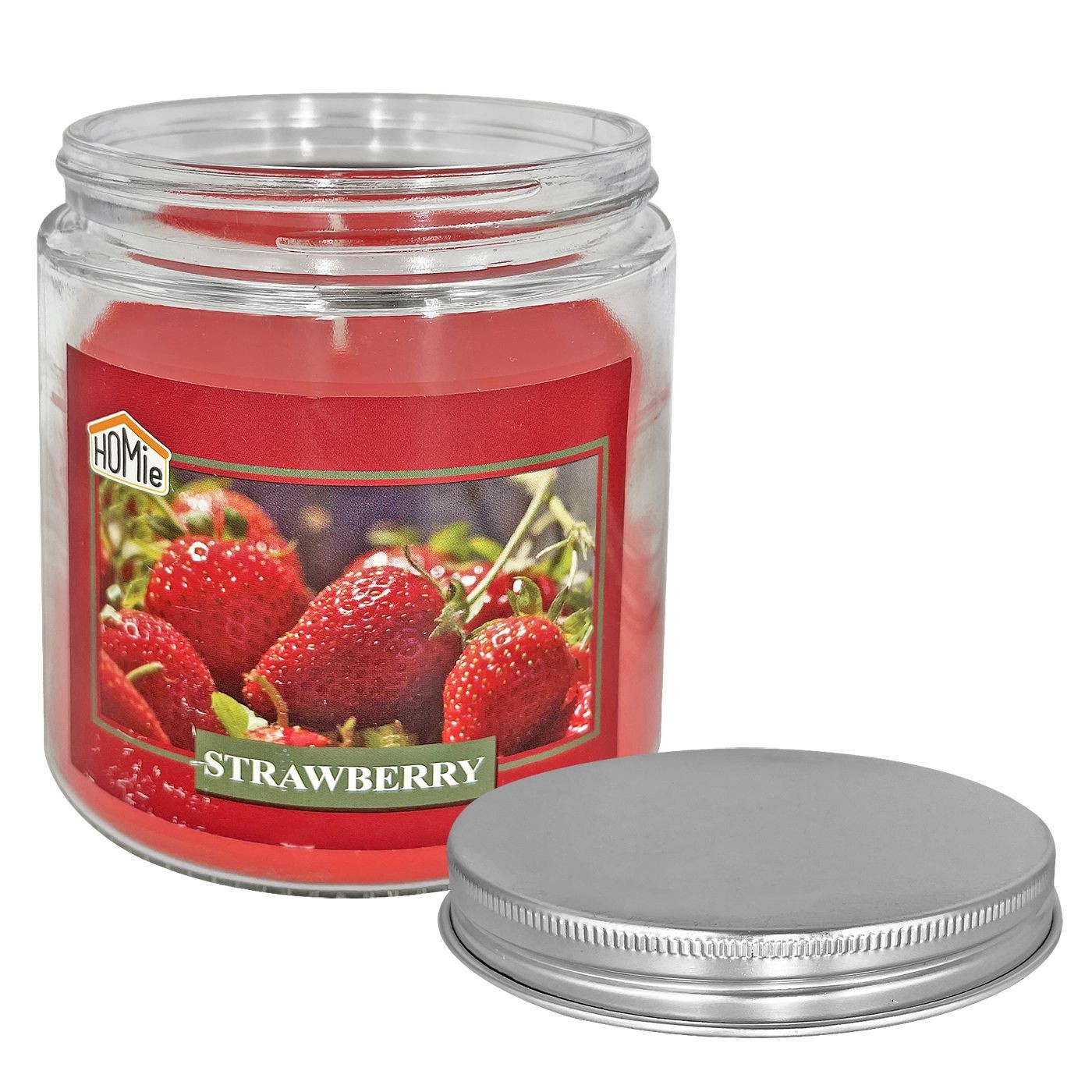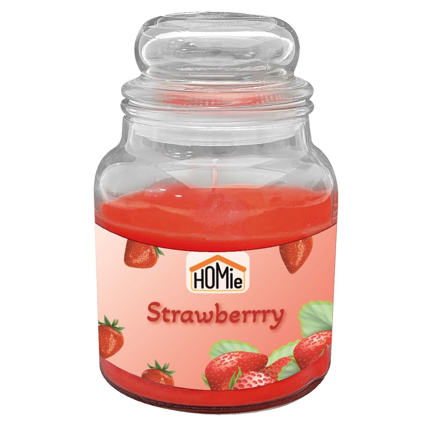 Κερί Φράουλα σε Βάζο με Καπάκι Μεγάλο 50h, 311gr Net, 14,5x11cm Homie 57471