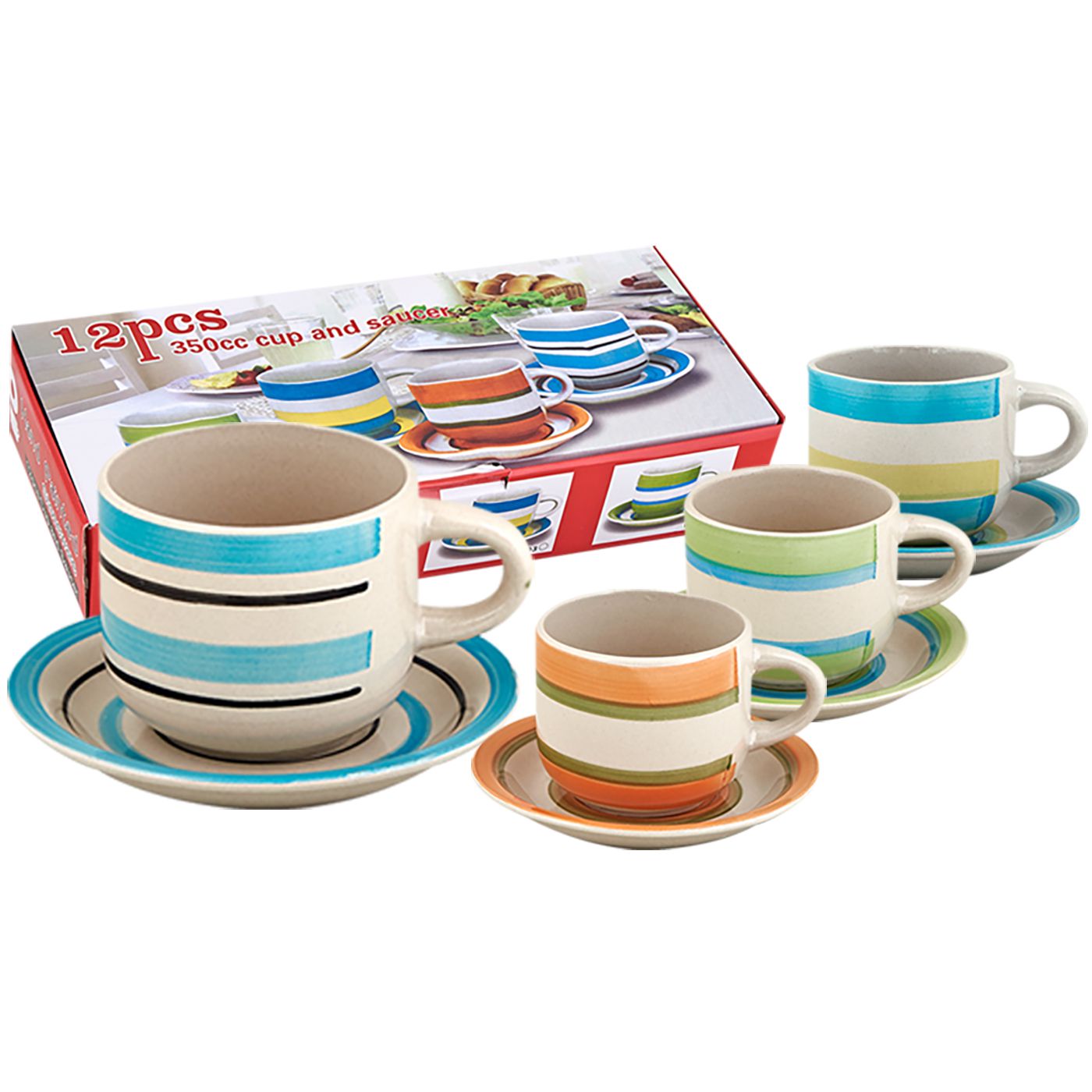 6 Φλυτζάνια & 6 Πιάτα για Καφέ Μεγάλα Πορσελάνης 330ml Homie 1001843