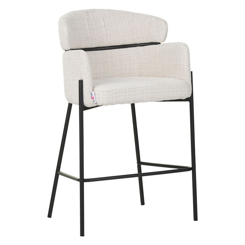 Pakoworld Σκαμπό μπαρ Tolerse Inart μπεζ ύφασμα-πόδι μαύρο μέταλλο (Σετ 2 τεμαχίων)