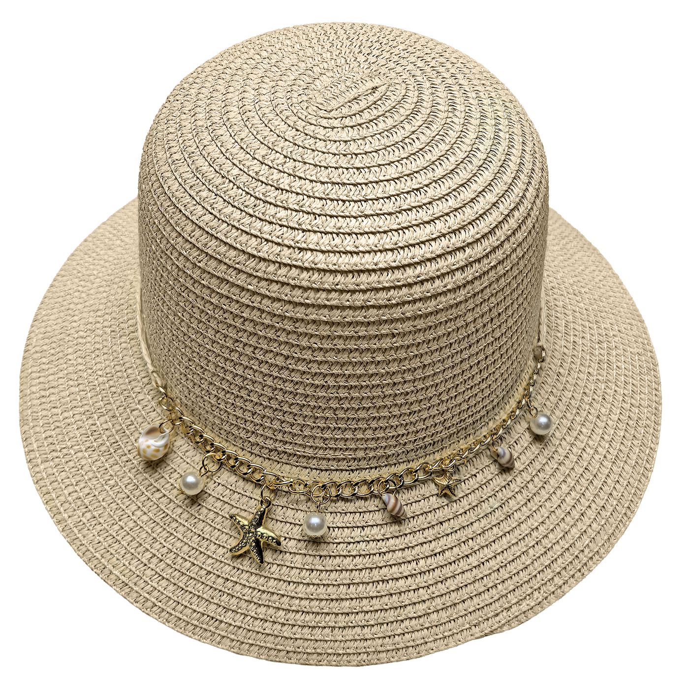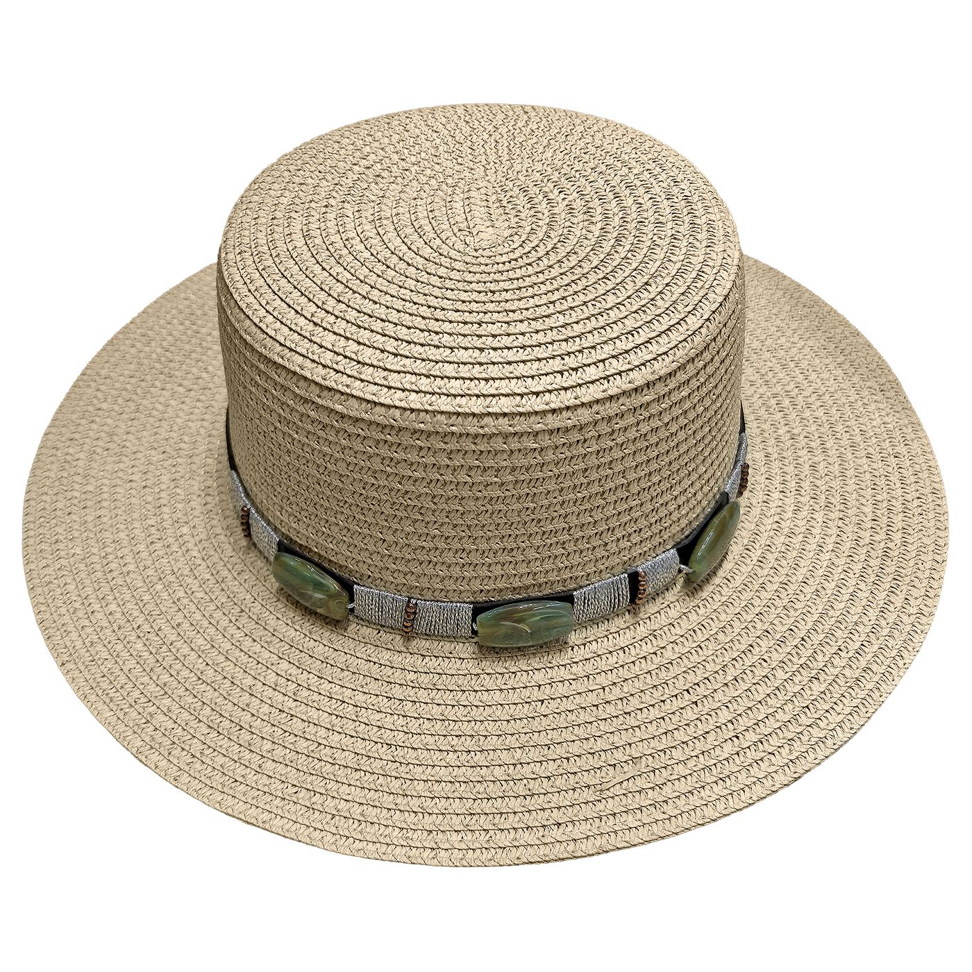 7,22€Καπέλο Ψαθόχαρτο με Κρόσια Δέρμα-Πετράδια ø42cm SummerTiempo 623351