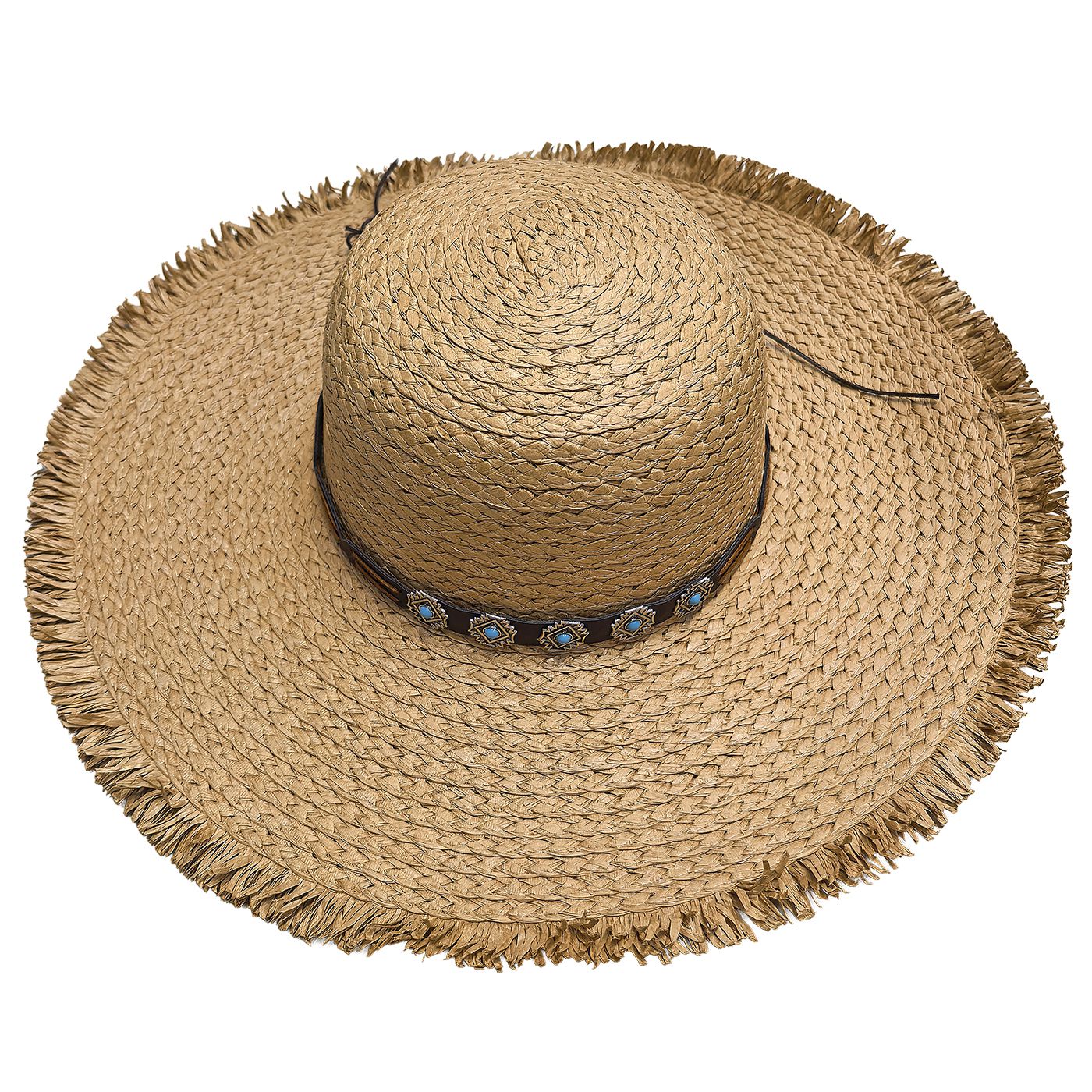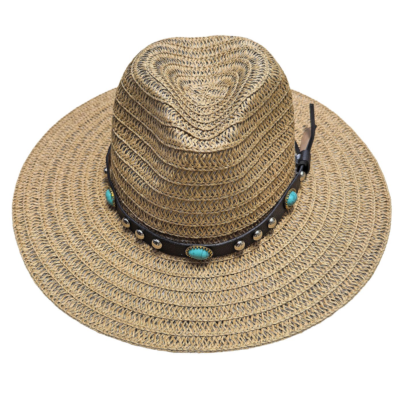 16,25€Καπέλο Ψαθόχαρτο Cowboy Δέρμα Τυρκουάζ Πέτρες ø36cm SummerTiempo 623347