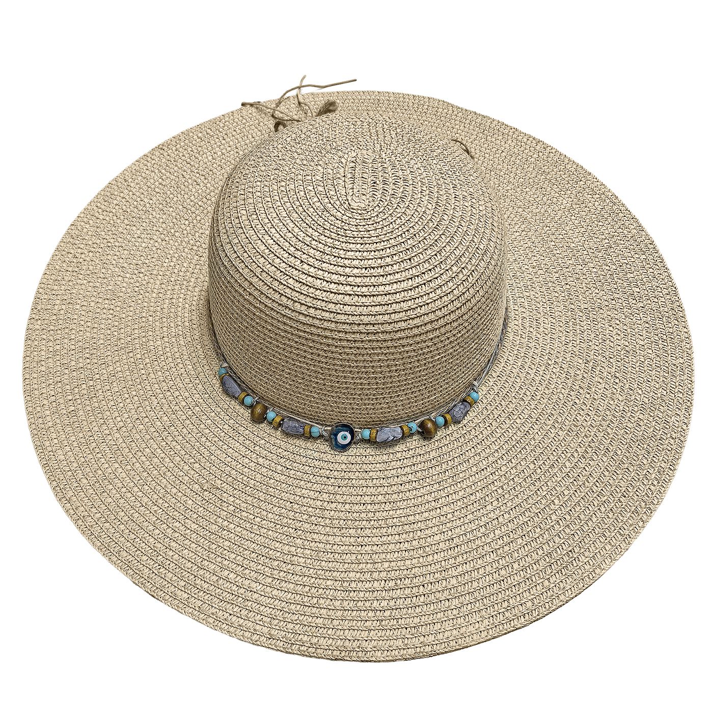 Καπέλο Ψαθόχαρτο Μεγάλο με Μπλε Πετράδια Μπεζ ø42cm SummerTiempo 623163