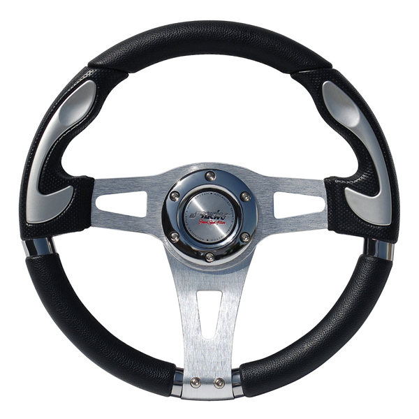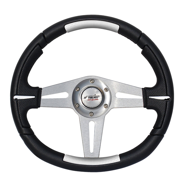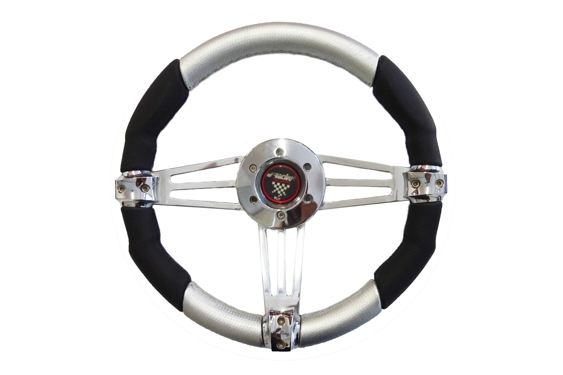 ΤΙΜΟΝΙ EPOCA ΜΑΥΡΟ/ΧΡΩΜΙΟ ΔΕΡΜΑΤΙΝΟ ΤΡΙΑΚΤΙΝΟ ΔΙΑΜΕΤΡΟΣ 350mm SIMONI RACING – 1 τεμ.