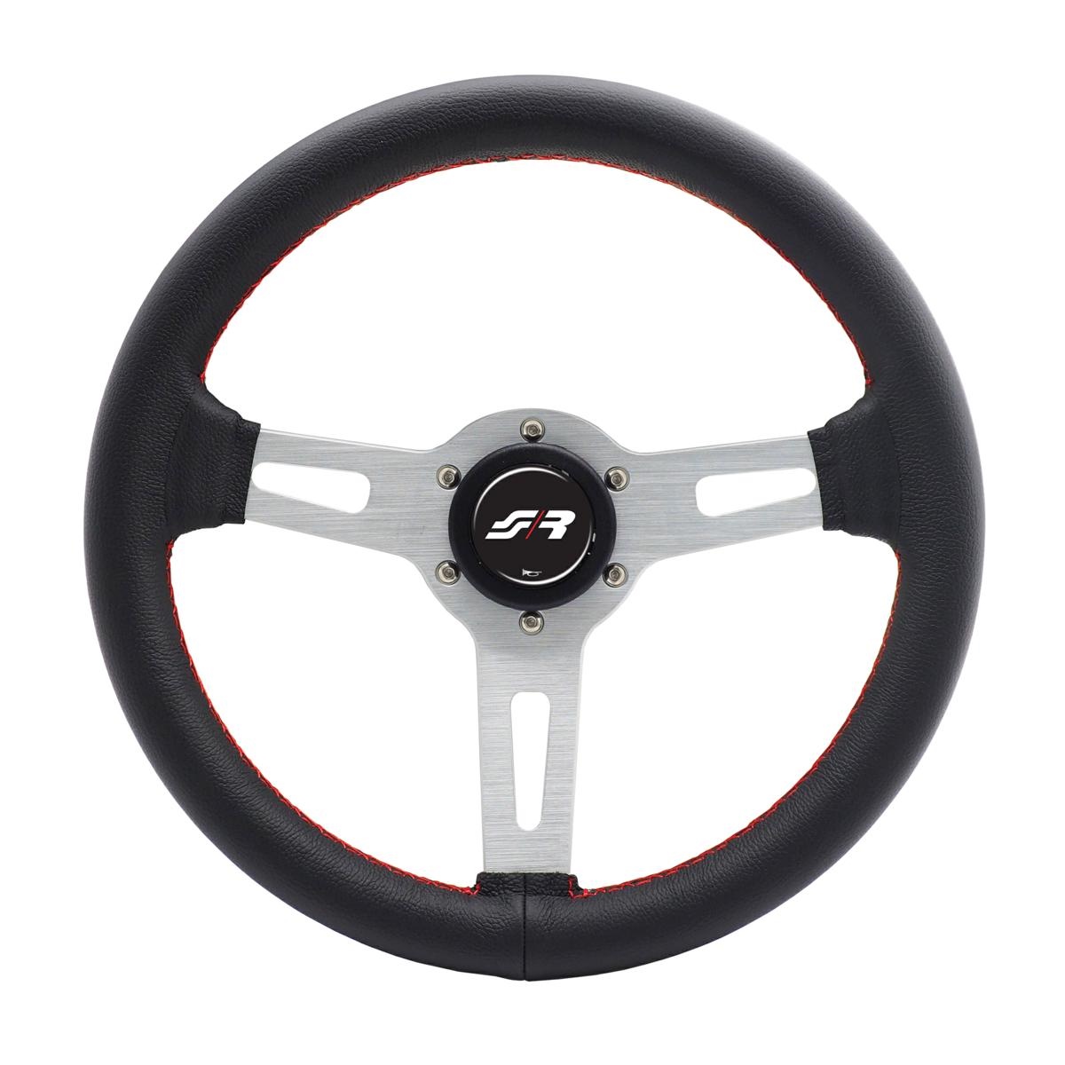 ΤΙΜΟΝΙ EPOCA ΜΑΥΡΟ/ΧΡΩΜΙΟ ΜΕ ΚΟΚΚΙΝΗ ΡΑΦΗ ΔΕΡΜΑΤΙΝΟ ΤΡΙΑΚΤΙΝΟ ΔΙΑΜΕΤΡΟΣ 350mm SIMONI RACING – 1 τεμ.
