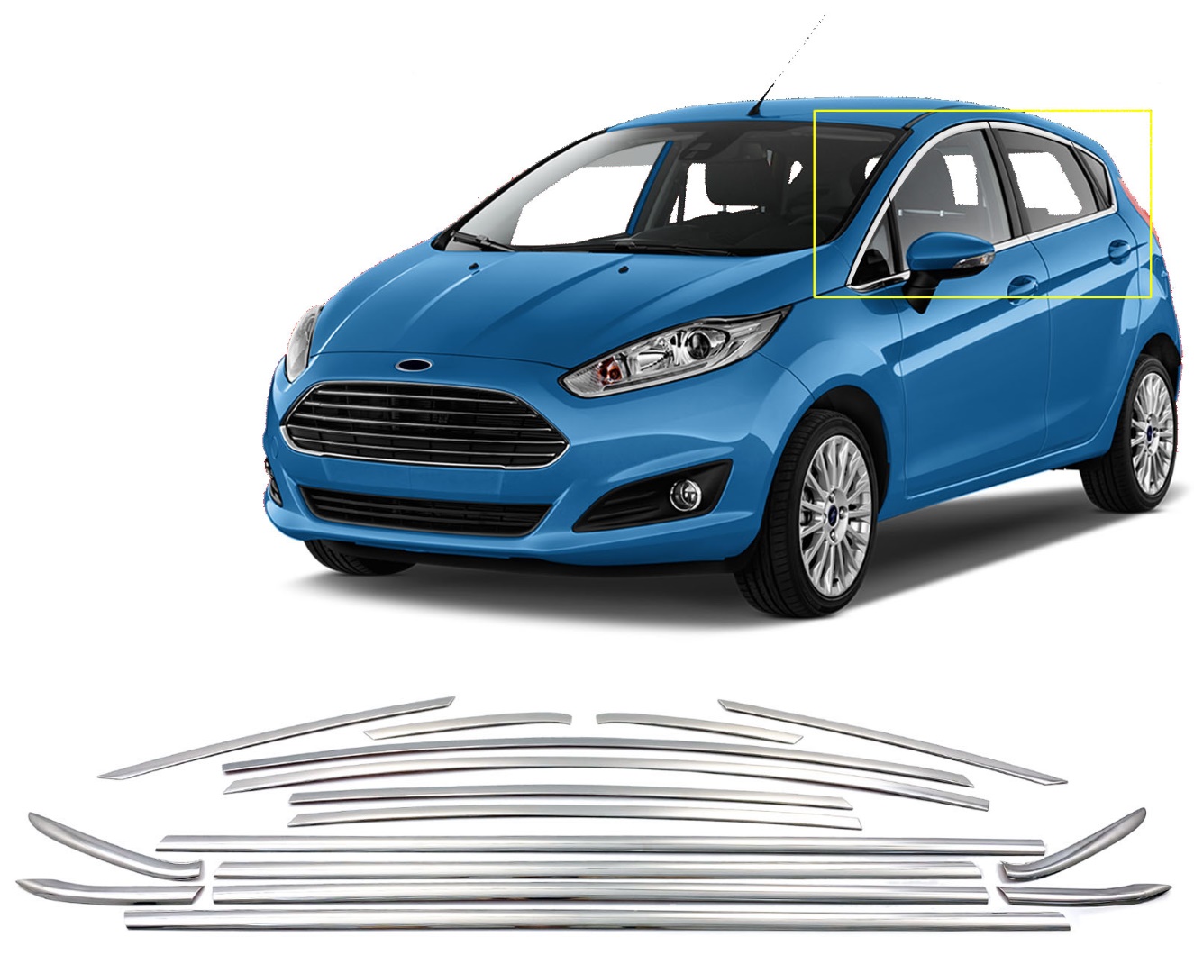 TRIM ΠΑΡΑΘΥΡΩΝ ΑΝΩ ΑΝΟΞΕΙΔΩΤΟ ΑΤΣΑΛΙ ΧΡΩΜΙΟ S-DIZAYN ΓΙΑ FORD FIESTA HB 5D 09+ – 8 TEM.
