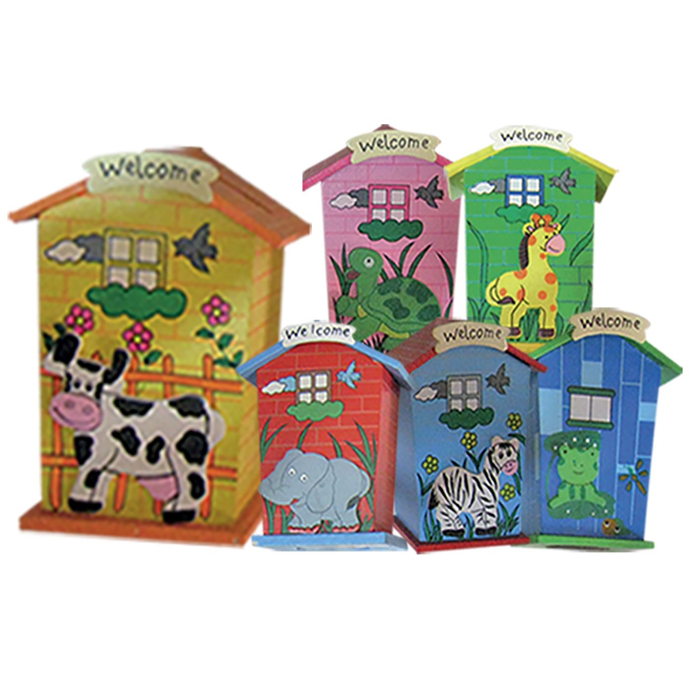 Κουμπαράς Ξύλινος Σπίτι-Ζώα 12x9x6cm Xmasfest 1131596