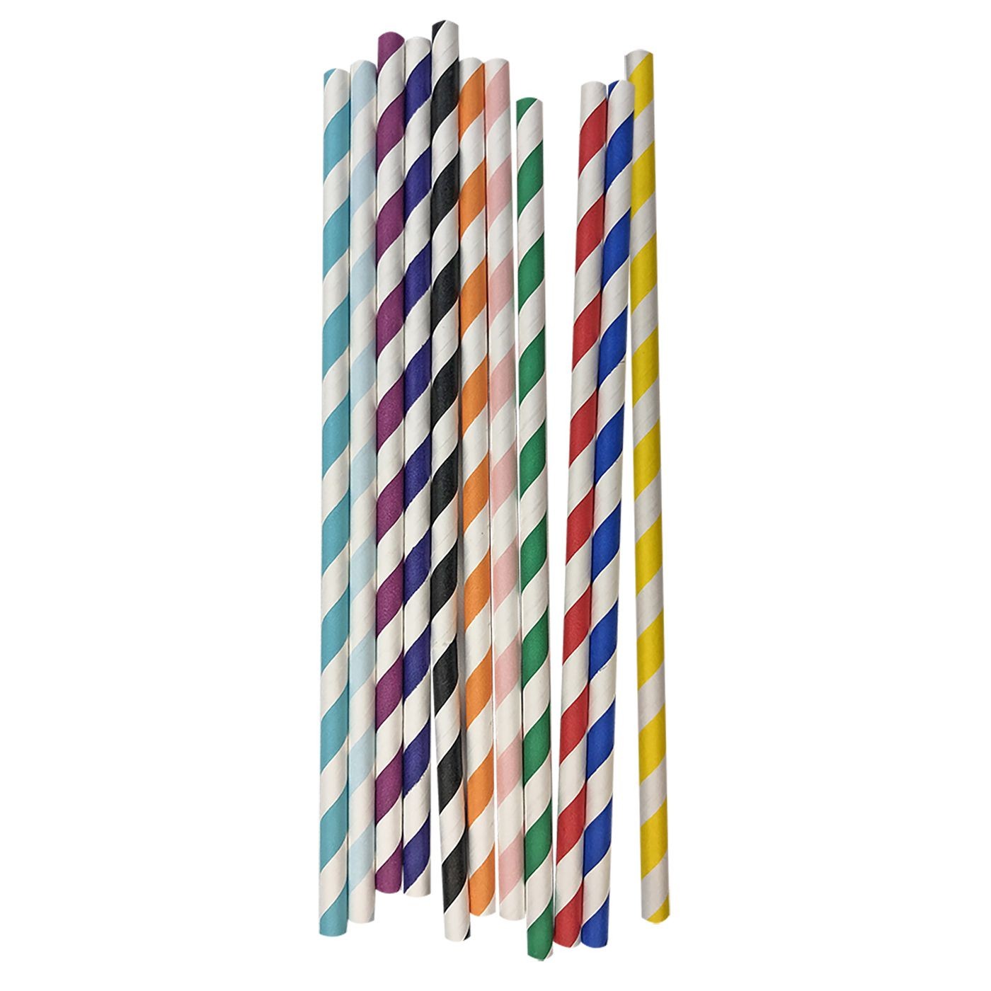 Πακ=10τεμ (ανά χρώμα), χάρτινα καλαμάκια 20cm