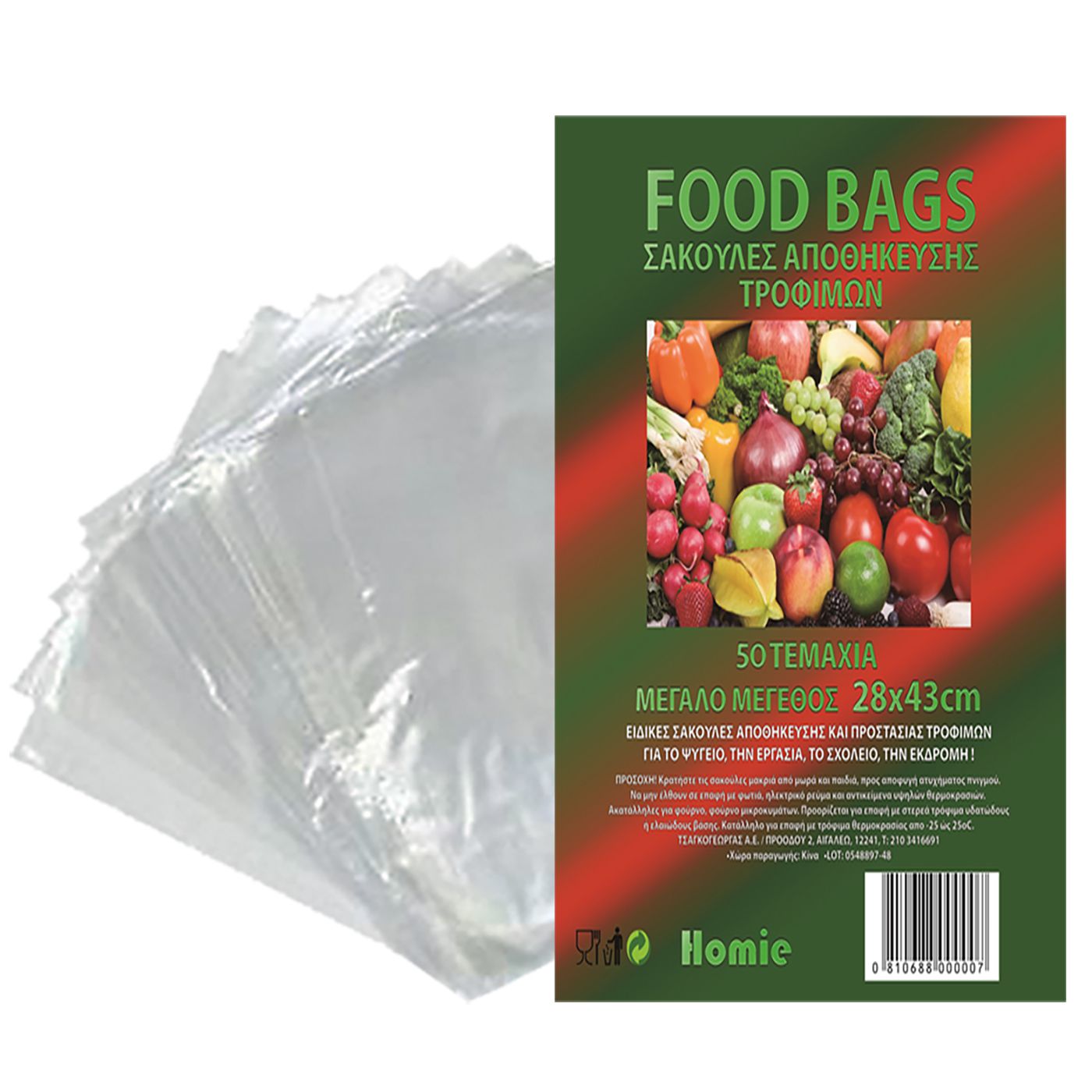 Σακούλες Τροφίμων Μεγάλες πακ=50τεμ 43x28cm Homie 101708