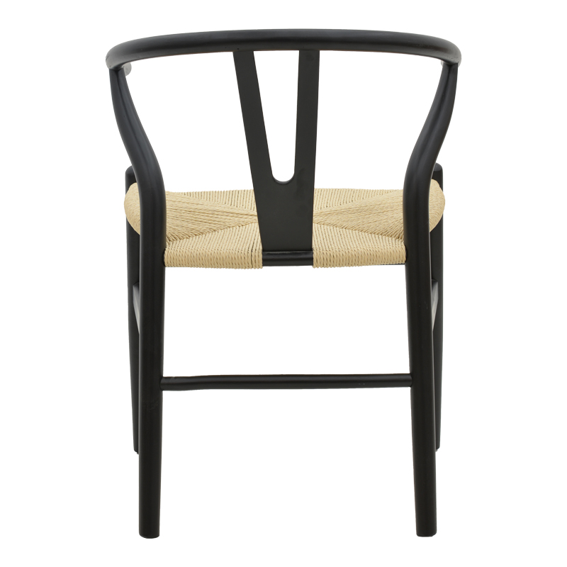 Καρέκλα Wishbone pakoworld μαύρο ξύλο οξιάς-έδρα με σχοινί σε φυσική απόχρωση 53x55x76εκ
