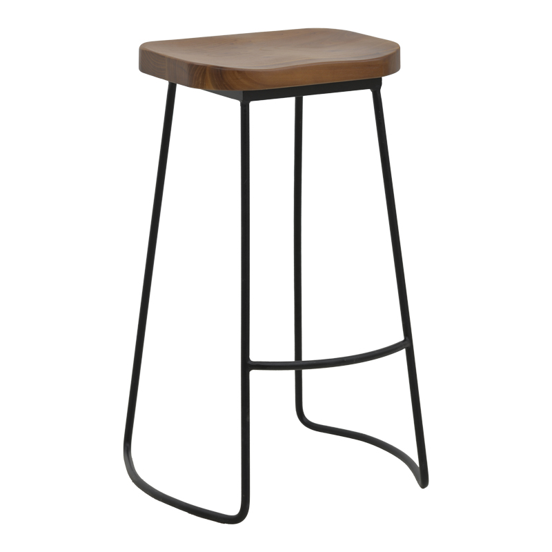 Σκαμπό μπαρ Lamul pakoworld ξύλο φτελιάς σε καρυδί-μαύρη απόχρωση και μέταλλο 48x42x71εκ