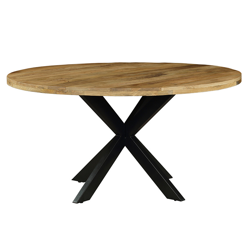 Τραπέζι Royalty pakoworld μασίφ ξύλο mango 4εκ καρυδί-πόδι μαύρο Φ150×77εκ