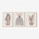Αυτό το τριπτυχικό σετ πινάκων είναι η τέλεια λύση για να δώσετε μια ήρεμη, αλλά στυλάτη πινελιά στον χώρο σας. Ο συνδυασμός αφηρημένης τέχνης και βοτανικών στοιχείων το καθιστά ιδανικό για σύγχρονη, boho ή σκανδιναβική διακόσμηση.