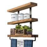 Ραφιέρα τοίχου Suny pakoworld μασίφ ξύλο πεύκου καρυδί-μαύρο 75x9x68εκ