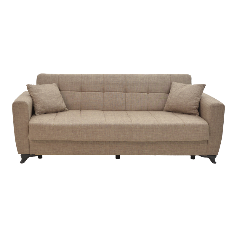 Καναπές-κρεβάτι με αποθηκευτικό χώρο τριθέσιος Modesto pakoworld ανοιχτό καφέ ύφασμα 215x85x80εκ
