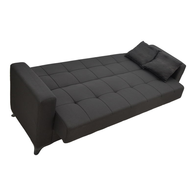 Καναπές-κρεβάτι με αποθηκευτικό χώρο τριθέσιος Modesto pakoworld μαύρο ύφασμα 215x85x80εκ