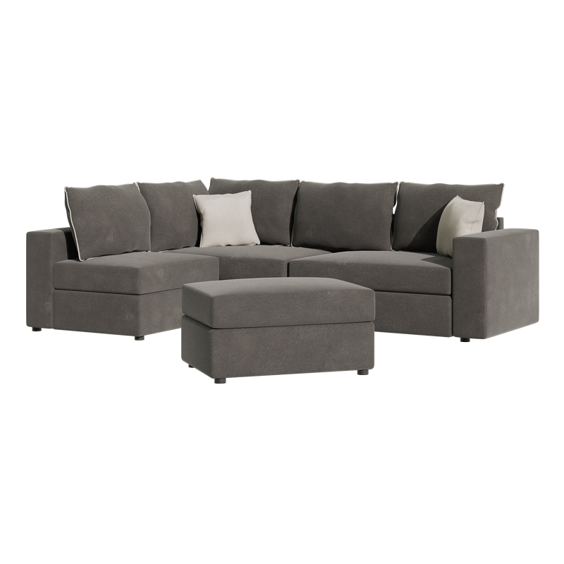 Πολυμορφικός-αναστρέψιμος καναπές London pakoworld ποντικί ύφασμα με μαξιλάρια σε απόχρωση ανοιχτό γκρι 296x246x95εκ