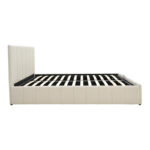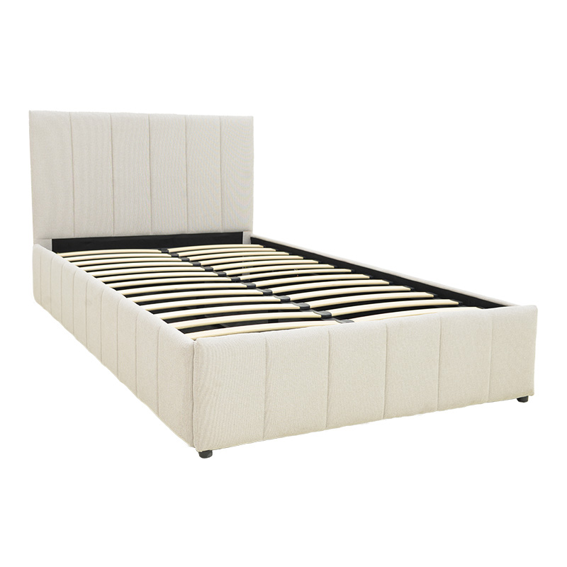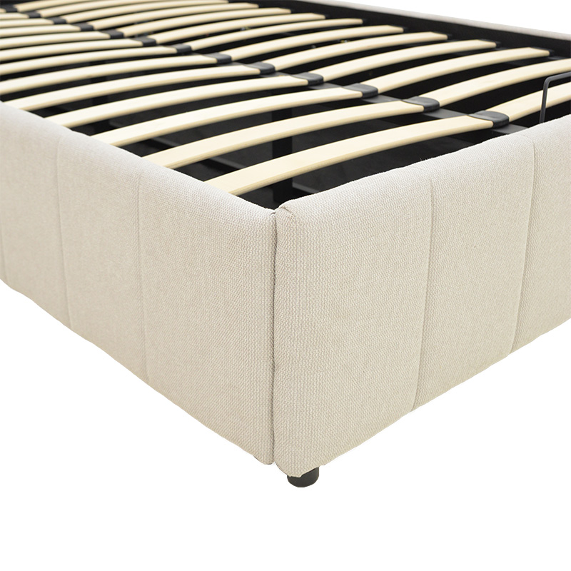 Το κρεβάτι διαθέτει έναν εύχρηστο μηχανισμό ανύψωσης του στρώματος, ο οποίος αποκαλύπτει έναν ευρύχωρο αποθηκευτικό χώρο από κάτω. Αυτό καθιστά εξαιρετικά εύκολη την τακτοποίηση κλινοσκεπασμάτων, μαξιλαριών, ρούχων εκτός εποχής ή άλλων αντικειμένων, συμβάλλοντας αποτελεσματικά στην οργάνωση και την τάξη του χώρου.