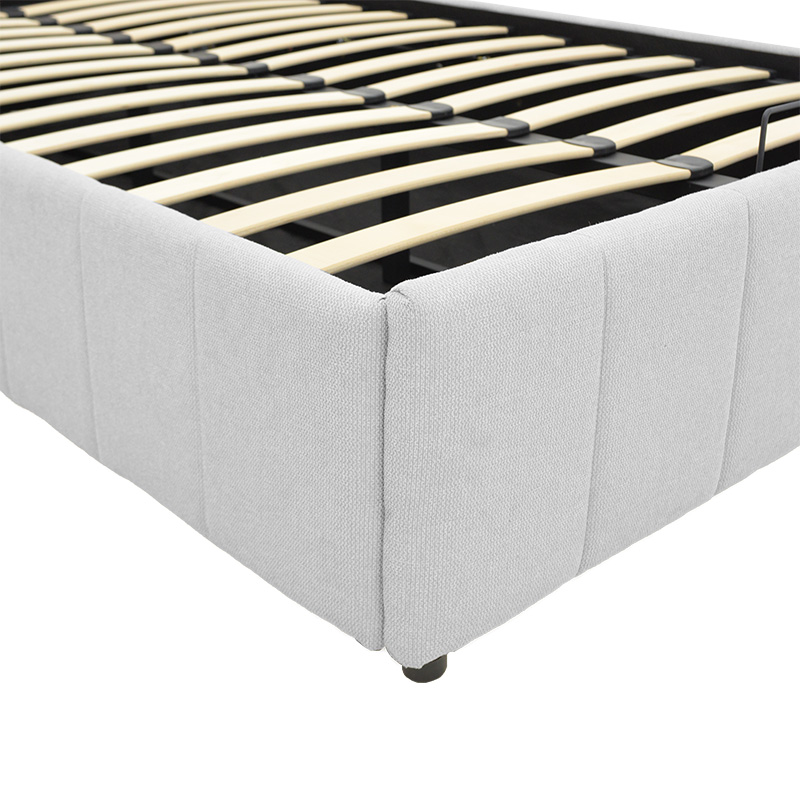 Το κρεβάτι διαθέτει έναν εύχρηστο μηχανισμό ανύψωσης του στρώματος, ο οποίος αποκαλύπτει έναν ευρύχωρο αποθηκευτικό χώρο από κάτω. Αυτό καθιστά εξαιρετικά εύκολη την τακτοποίηση κλινοσκεπασμάτων, μαξιλαριών, ρούχων εκτός εποχής ή άλλων αντικειμένων, συμβάλλοντας αποτελεσματικά στην οργάνωση και την τάξη του χώρου.