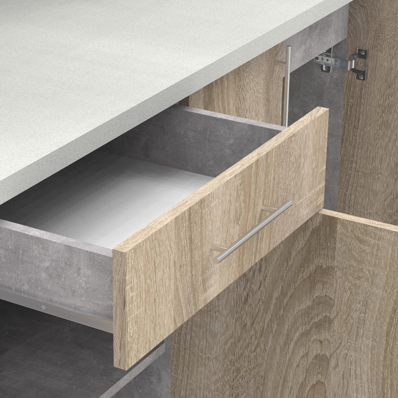 Το σετ κουζίνας Festa IV είναι μια κομψή και λειτουργική επιλογή καθώς ο σχεδιασμός της συνδυάζει την απλότητα με την πρακτικότητα, προσφέροντας μια μοντέρνα αισθητική που ταιριάζει σε όλα τα στυλ διακόσμησης. Η διάταξη των ντουλαπιών και του πάγκου εργασίας είναι εξαιρετικά εργονομική, επιτρέποντας την εύκολη πρόσβαση σε όλα τα απαραίτητα μαγειρικά σκεύη και συσκευές.