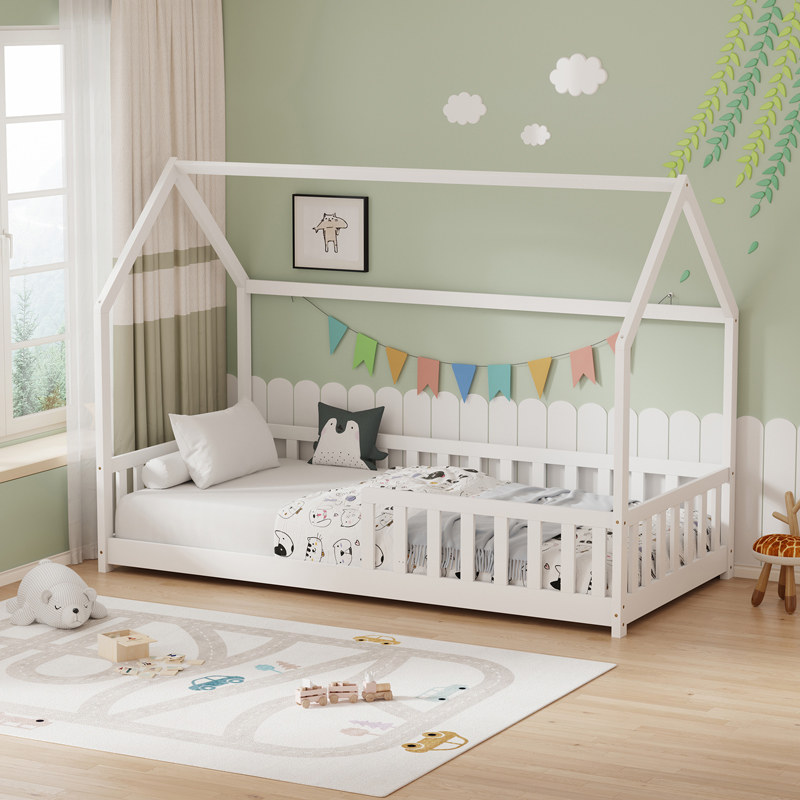 Το σχήμα σπιτάκι, εκτός από τάση στη διακόσμηση των παιδικών δωματίων, δίνει στο παιδί τη δυνατότητα να παίζει και να ονειρεύεται σε έναν χώρο που θεωρεί αποκλειστικά δικό του.