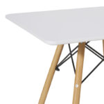 Τετράγωνο τραπέζι minimal αισθητικής και design, σε συνδυασμό: Φυσικό ξύλο οξιάς στα πόδια και λευκή επιφάνεια MDF.