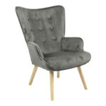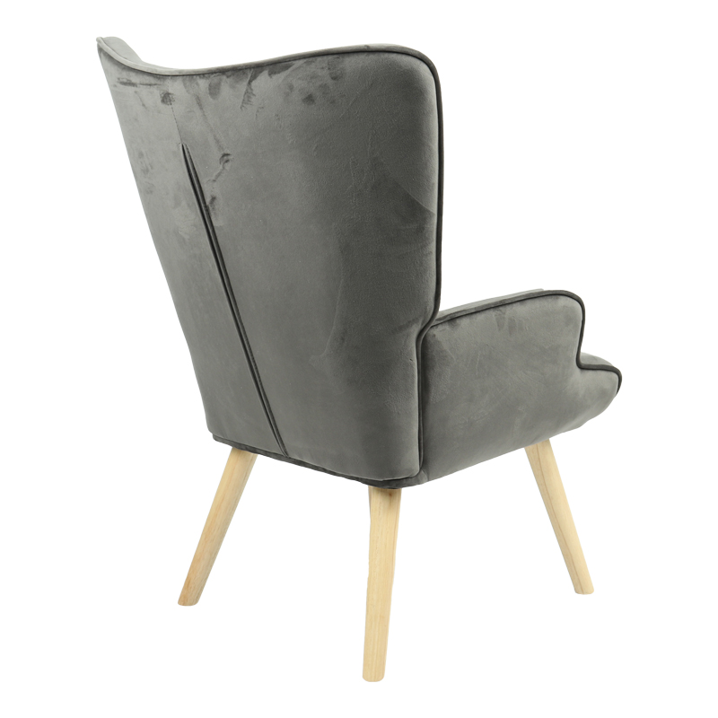 Πολυθρόνα Fluffy pakoworld βελούδο ανθρακί-φυσικό πόδι 75x69x96εκ