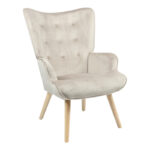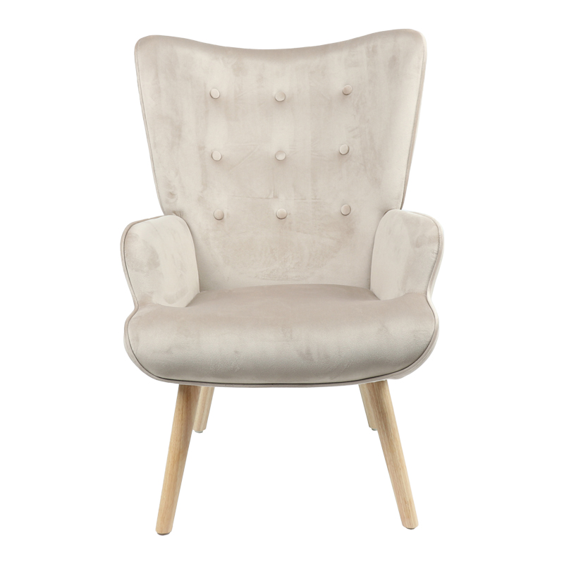 Πολυθρόνα Fluffy pakoworld βελούδο μπεζ-φυσικό πόδι 75x69x96εκ