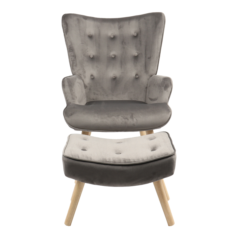 Πολυθρόνα με υποπόδιο Vivienne pakoworld βελούδο ανθρακί-φυσικό πόδι 75x69x96εκ