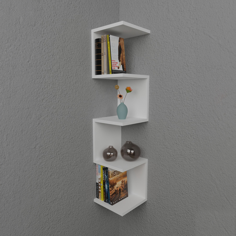 Ραφιέρα τοίχου Zigzag pakoworld λευκό μελαμίνης 25x25x109εκ