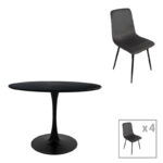 Τραπεζαρία Balou-Grato pakoworld σετ 5τεμ μαύρο Φ100×73εκ