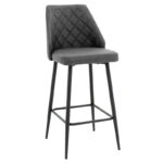 Σκαμπό μπαρ Inflame pakoworld PU ανθρακί-μέταλλο μαύρο