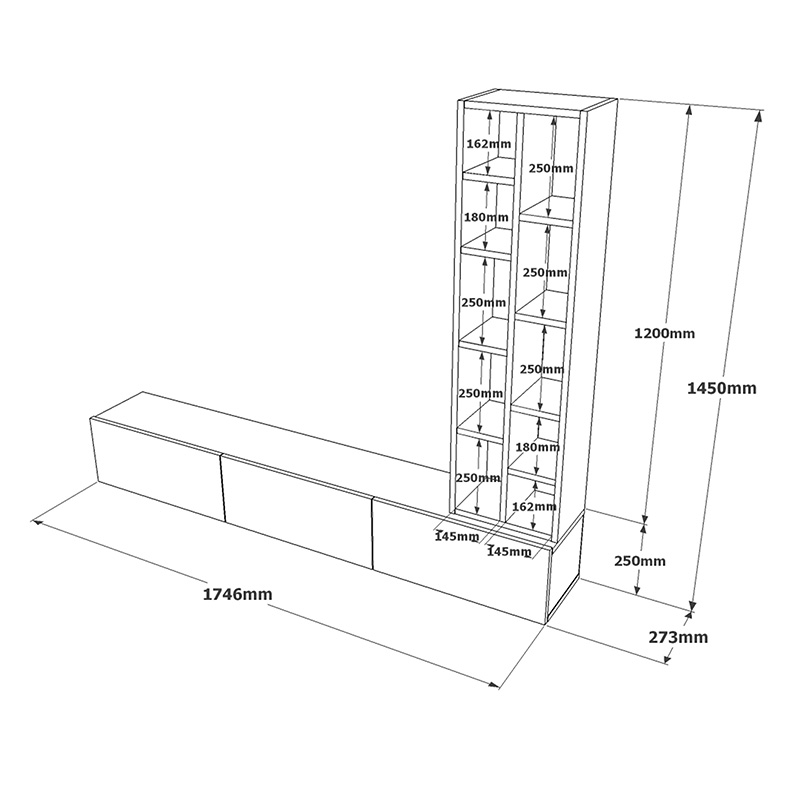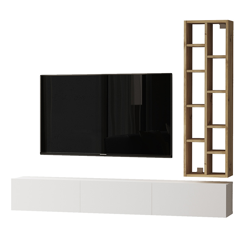 Μοντέρνα σύνθεση σαλονιού που θα ανανεώσει τον χώρο σας, δίνοντας σας παράλληλα τη δυνατότητα μεγάλου αποθηκευτικού χώρου για διακοσμητικά αντικείμενα και βιβλία. Μία ιδανική πρόταση διακόσμησης για το καθιστικό ή το σαλόνι σας, καθώς με τον συνδυασμό ραφιών και ντουλαπιού, δημιουργεί ένα εντυπωσιακό αποτέλεσμα.