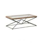 Τραπέζι σαλονιού Cena Inart μαύρο-φυσικό μέταλλο-γυαλί-ξύλο 121x61x45εκ