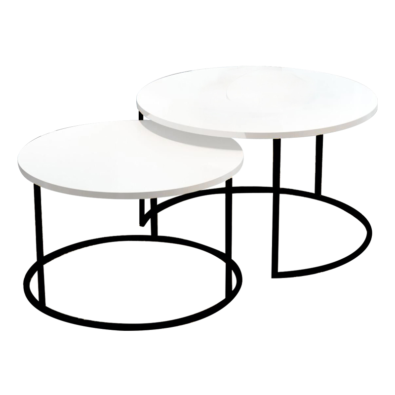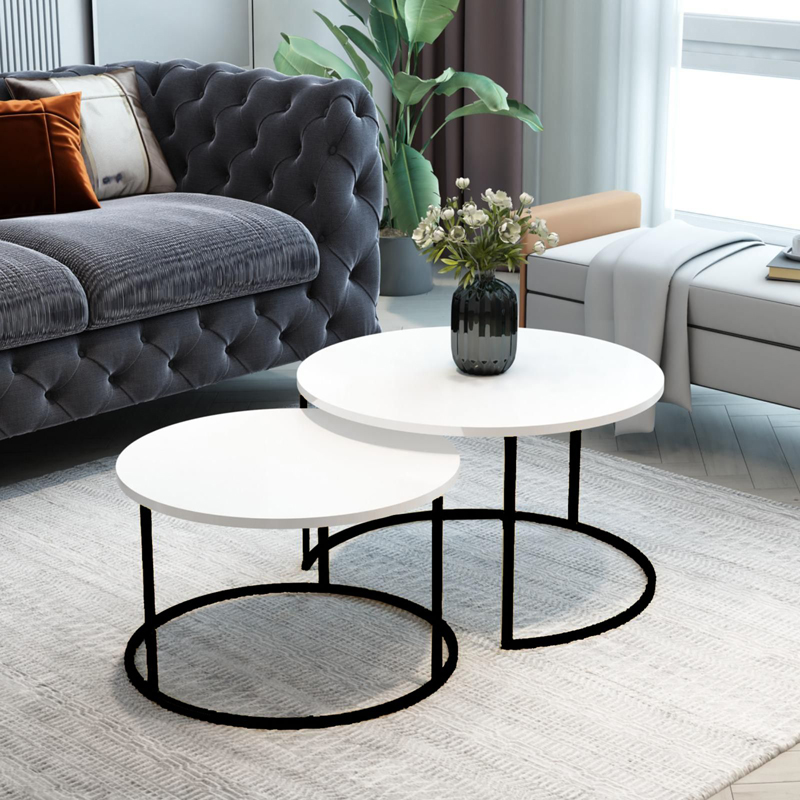 Τραπέζια σαλονιού Solme pakoworld σετ 2τεμ λευκό μελαμίνης-μαύρο μέταλλο