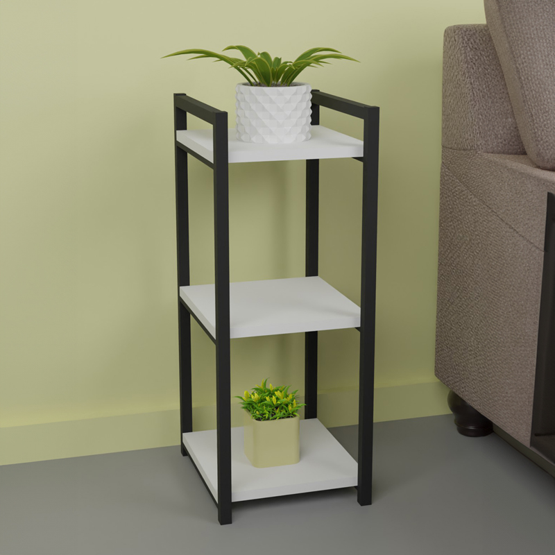 Επιδαπέδια ραφιέρα Harvey pakoworld μαύρο μέταλλο και μελαμίνη σε λευκή απόχρωση 33x28x70εκ