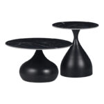 Pakoworld Βοηθητικά τραπέζια Kirkene Inart sintered stone σε απόχρωση μαύρο μαρμάρου με μαύρο μέταλλο 2τεμ