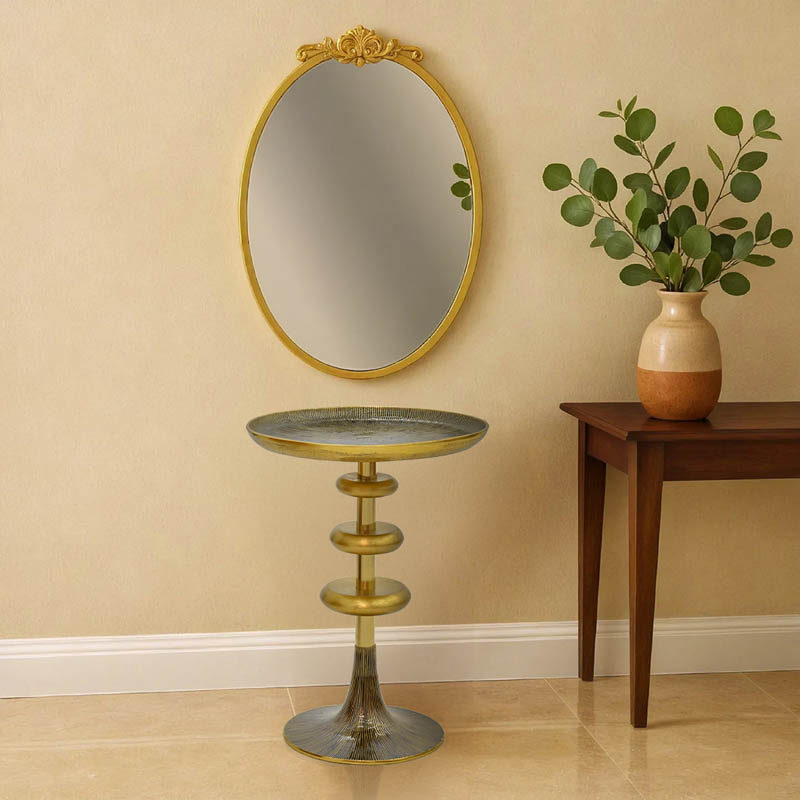 Βοηθητικό τραπέζι Trego Inart χρυσό-μαύρο μέταλλο Φ39×55εκ