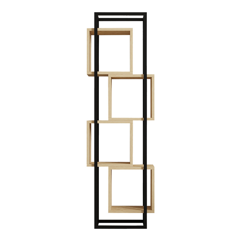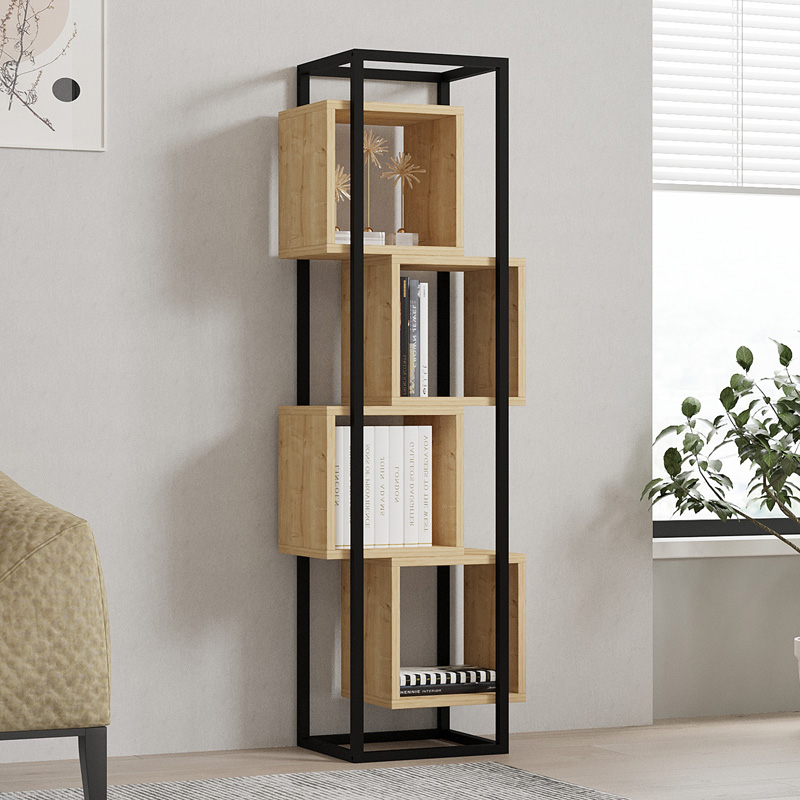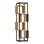 Βιβλιοθήκη Gridur pakoworld σε oak απόχρωση με μαύρο μεταλλικό σκελετό 44x29x140εκ