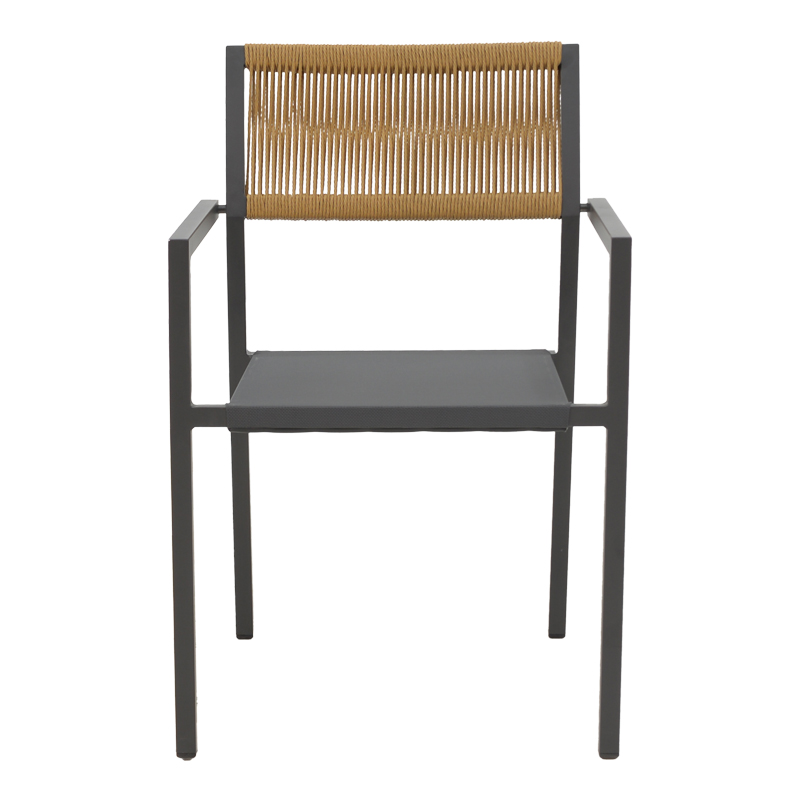 Πολυθρόνα αλουμινίου Savor pakoworld στοιβαζόμενη ανθρακί σκελετός-textilene φυσικό rattan 55x58x63εκ