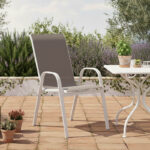 Πολυθρόνα Calan pakoworld μέταλλο λευκό-textilene καφέ