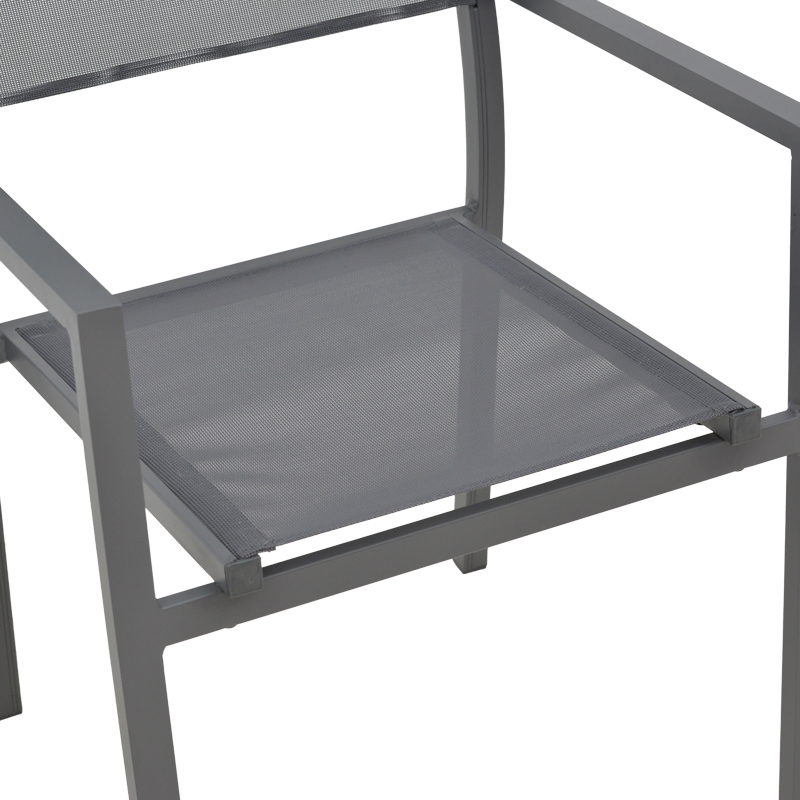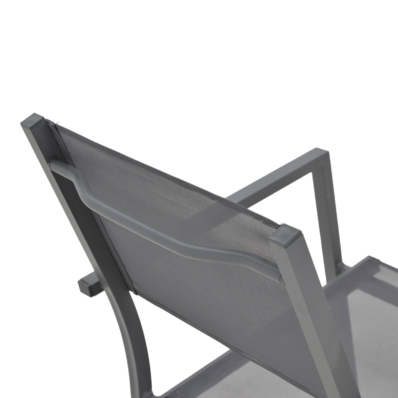 * Επένδυση υφάσματος textinene. Το textilene είναι ύφασμα μεγάλης αντοχής στην ηλιακή ακτινοβολία UV και την υγρασία, ενώ παράλληλα αφήνει το δέρμα να “αναπνέει” δημιουργώντας έτσι άνεση στην έδραση.