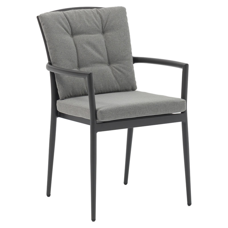 Πολυθρόνα κήπου Moritz pakoworld αλουμίνιο ανθρακί σχοινί-μαξιλάρι γκρι