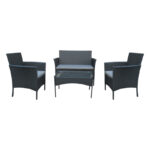 Σαλόνι κήπου Calmness pakoworld σετ 4τμχ rattan μαύρο-ύφασμα γκρι