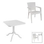 Τραπεζαρία κήπου Groovy-Halcyon pakoworld σετ 5τεμ PP λευκό 80x80x74,5εκ