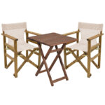 Tραπεζαρία κήπου Retto σετ 3τμχ μασίφ ξύλο οξιάς καρυδί-πανί μπεζ-λευκό 60x60x71εκ